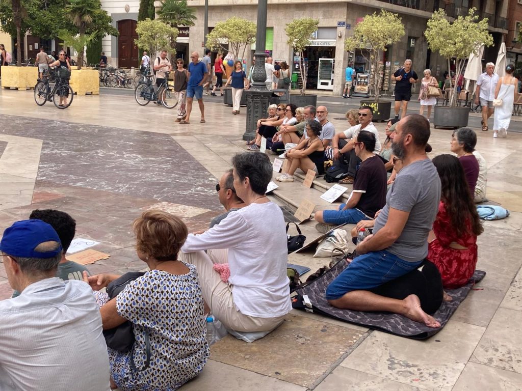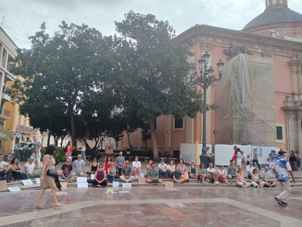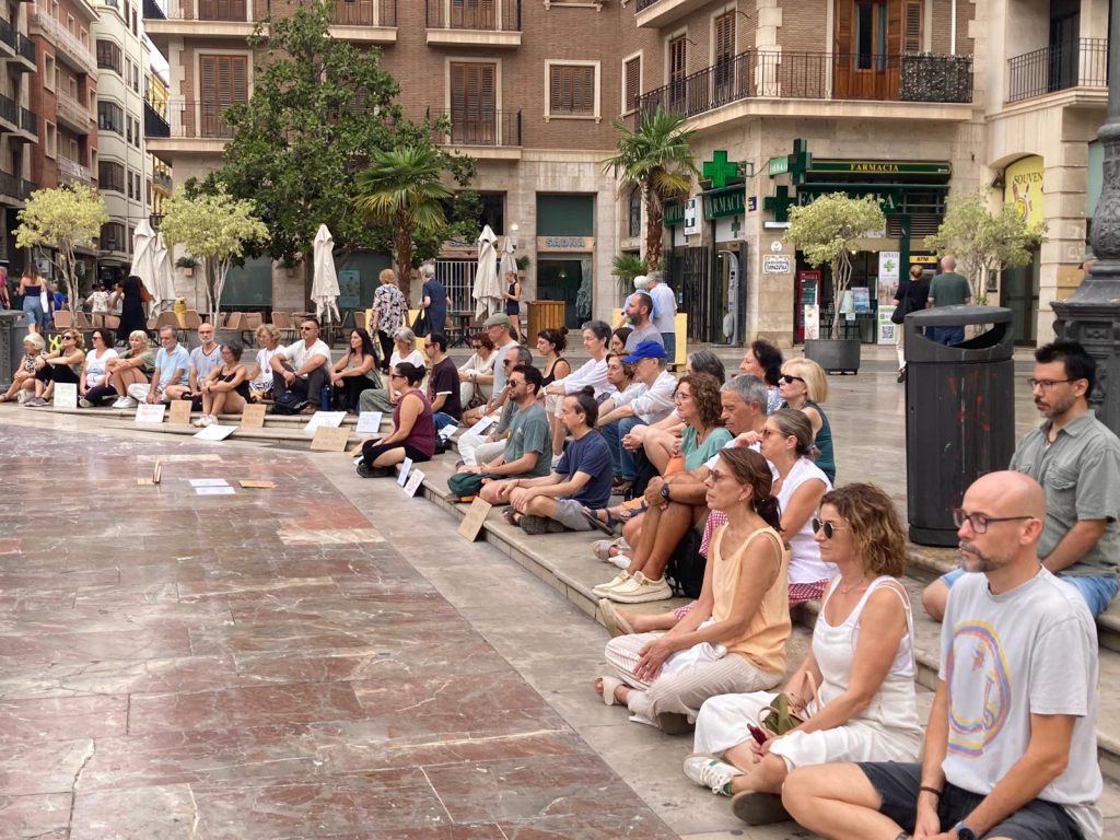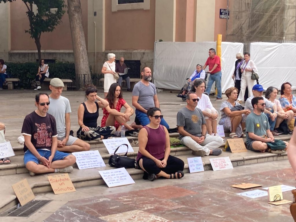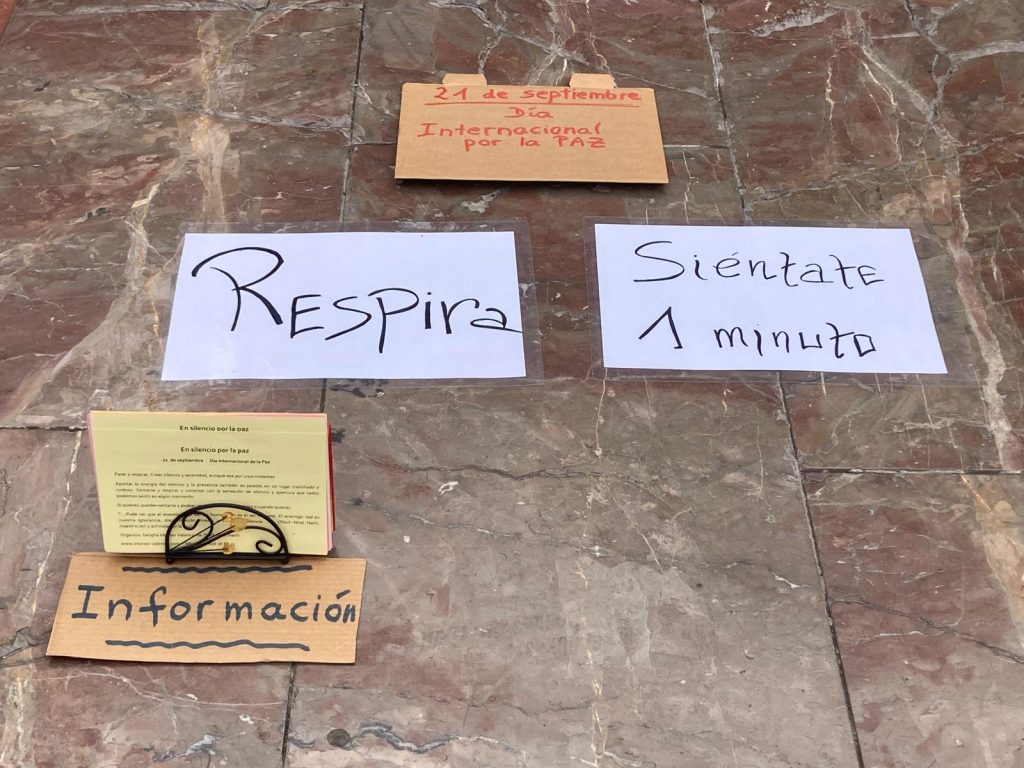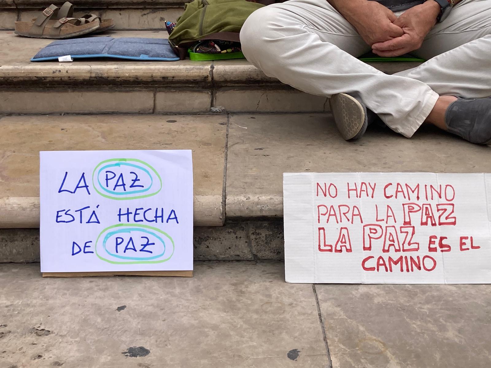 El 21 de septiembre, Día Internacional de la Paz, nos sentamos en silencio en las escaleras de la Plaza de la Virgen.